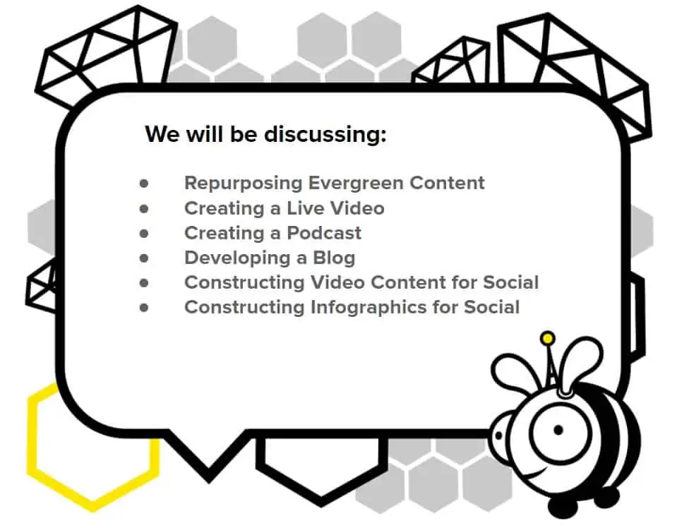 Esta semana, analizaremos cómo crear máquinas de marketing de contenidos eficaces y cómo reutilizar el contenido. Analizaremos un único contenido imperecedero y lo reutilizaremos de formas divertidas y creativas.