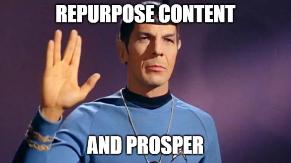 Y piensa en el trabajo duro que dedicaste para crear ese excelente contenido. ¡No quieres que quede enterrado! Reutilizar ese contenido ayuda a que siga siendo relevante mucho después de su fecha de publicación.